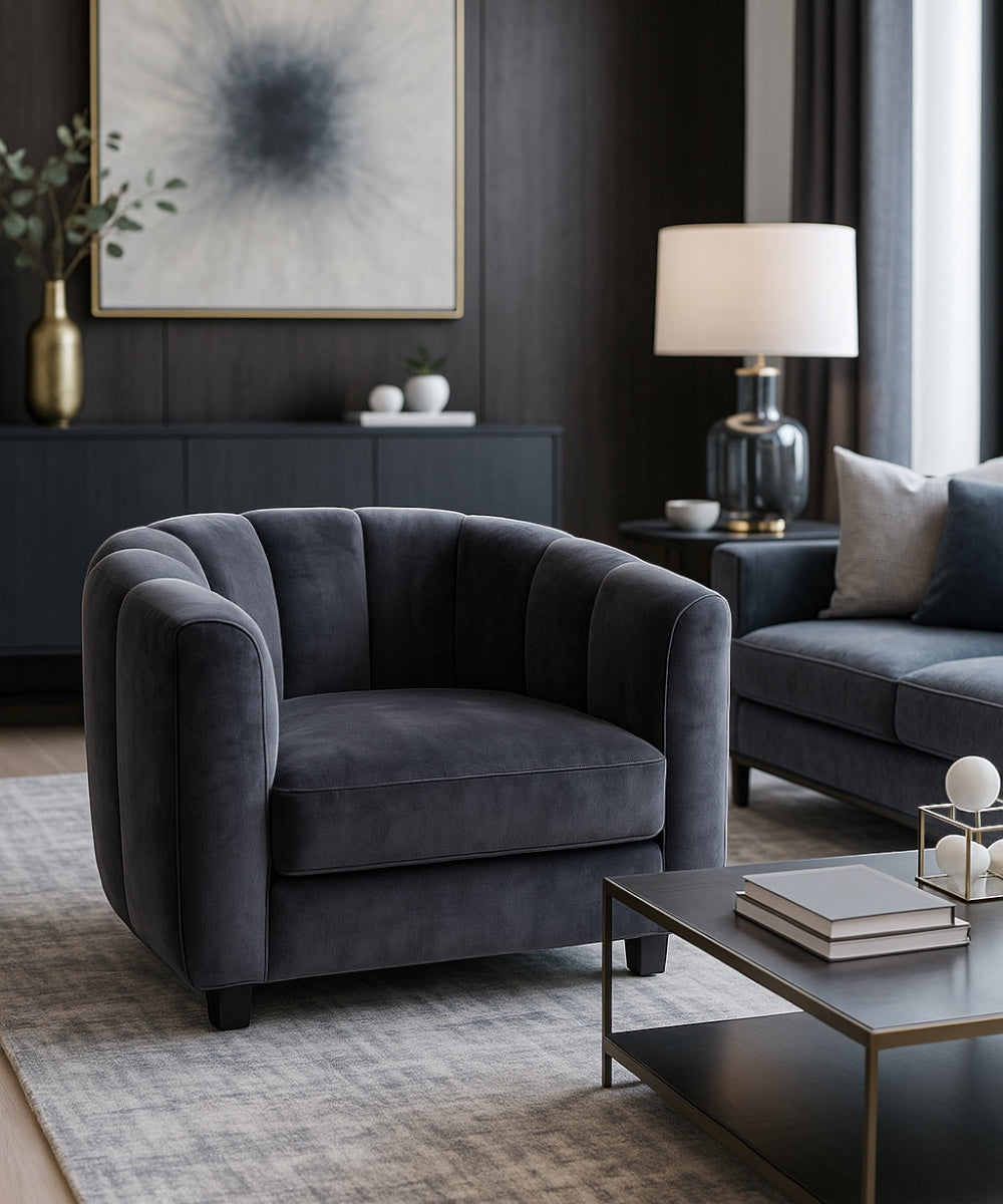 Con un diseño envolvente y respaldo acolchado en franjas, la butaca Onix ofrece una experiencia de confort total. Ideal para espacios sofisticados que buscan volumen y suavidad en un solo mueble.