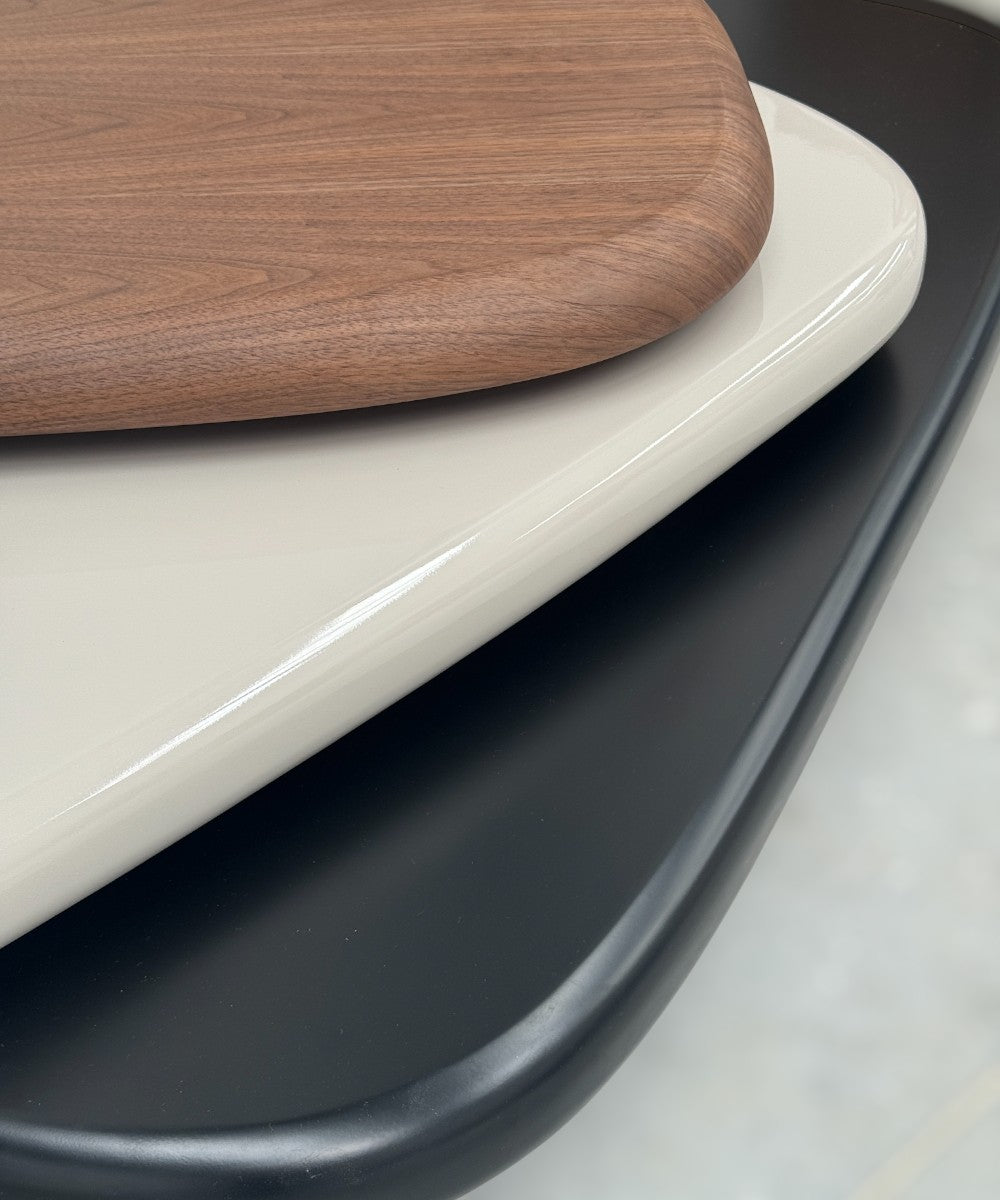 La mesa Nilo está fabricada en 100% madera de fresno, con un diseño de tapas superpuestas que aporta movimiento y un toque moderno a la sala. Sus formas suaves y proporciones equilibradas la convierten en una mesa de centro ideal para espacios contemporáneos.